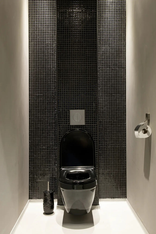 Zelfs de kleinste details zijn doordacht: van het chique zwarte sanitair met mozaïektegels tot de natuurstenen waskommen met messing kranen. Elk element draagt bij aan een ervaring die verder gaat dan alleen winkelen, dit is een wereld op zichzelf.