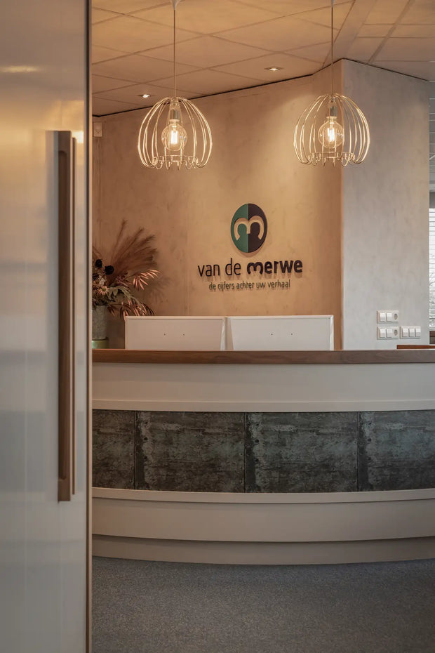 Van de Merwe is geen standaard accountantskantoor. Hun visie "de cijfers achter uw verhaal” is de essentie van hun werk. En dat mocht weerspiegeld worden in de omgeving. Weg met de steriele, kille uitstraling die je vaak tegenkomt in de financiële wereld. Hier is gekozen voor warmte, sfeer en karakter.