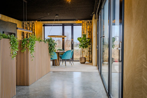 Verscholen in de uiterwaarden van Rhenen, waar de Nederrijn als een schilderij de horizon raakt, ligt het kantoor van Viridia Consultancy. Dit is geen standaard werkplek, geen steriele omgeving van beton en glas. Dit is een plek waar ideeën groeien, waar gesprekken diepgang krijgen en waar een gevoel van rust en verfijning hand in hand gaan. Fionora ontwierp een interieur dat niet alleen de essentie van Viridia weerspiegelt, maar ook een warme omhelzing geeft aan iedereen die hier binnenstapt.
